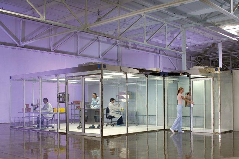 空氣從潔凈室頂部的風機過濾單元進入,經過過濾以層流的方式進入工作區域,保持潔凈室內部的正壓強,阻止污染物的入侵。